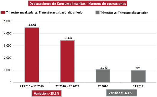 - Entre enero y marzo, las sociedades inmersas en concursos de acreedores bajaron un 6,1% respecto al mismo trimestre de 2016